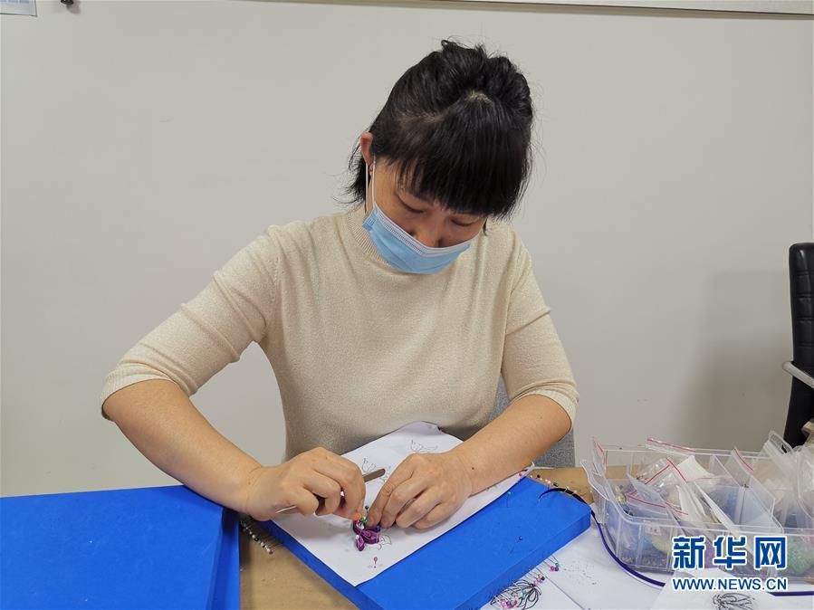 工藝師孫亞杰在為貧困婦女示范如何制作傳統(tǒng)盤扣。(新華社記者魏婧宇 攝影)