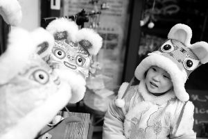 壬寅新年,一名小朋友試戴虎頭帽。新華網(wǎng)發(fā)