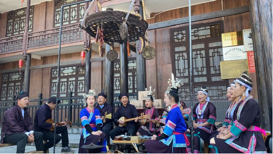 蘆笙踩堂、鼓樓歡醉、笛子歌、侗族大歌、團(tuán)圓多耶舞、非遺體驗、年貨展銷——平寨演藝中心