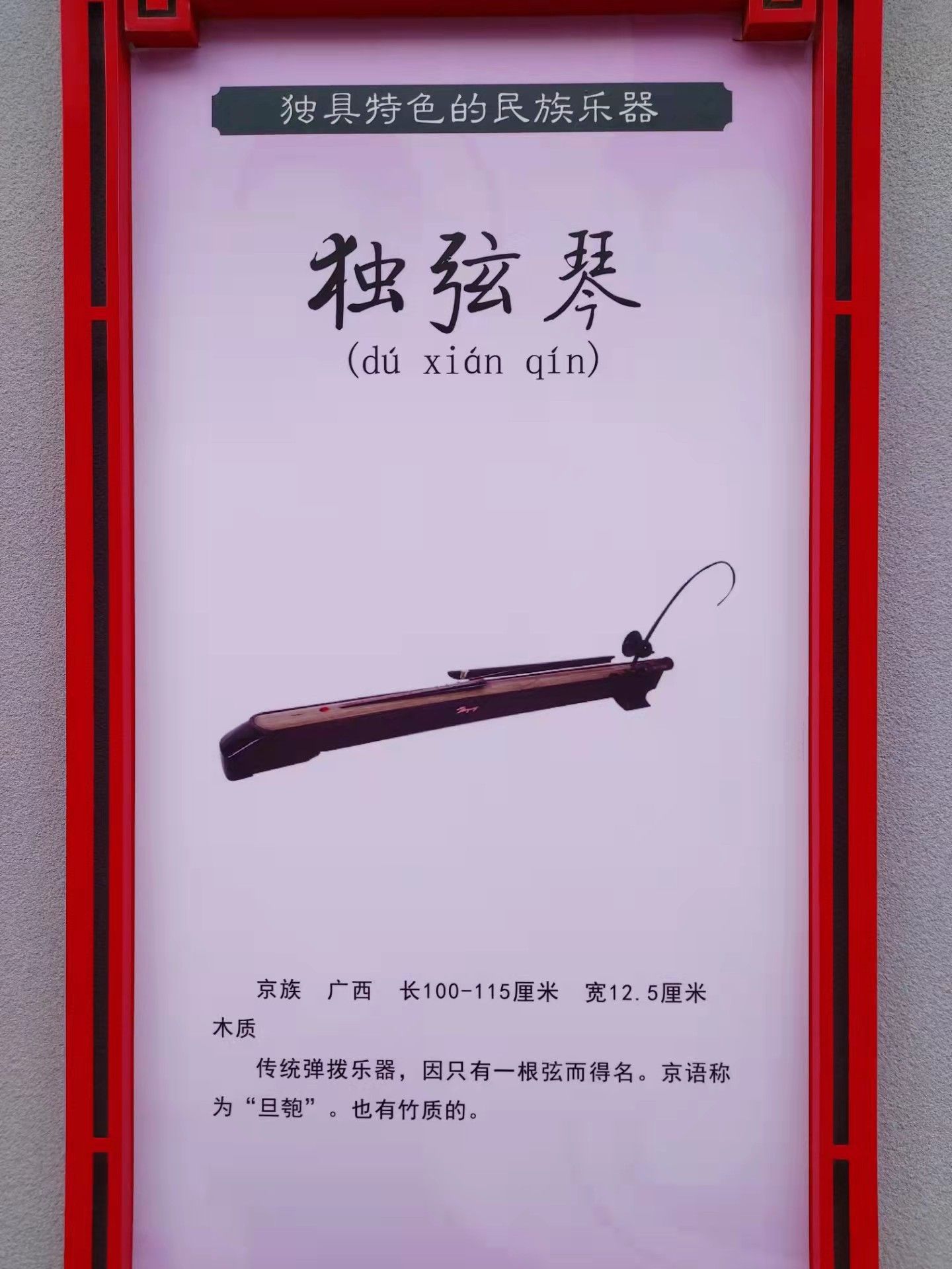 傳統(tǒng)彈撥樂器,因只有一根弦而得名。京語稱為“旦匏”。也有竹質的。
