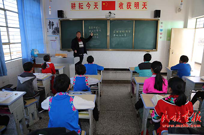臘灣民族小學(xué)是牟定縣海拔最高的小學(xué),這里環(huán)境艱苦,但是來這里的老師都堅持了下來。明艷紅老師2011年從楚雄師范學(xué)院畢業(yè)后,來到了臘灣民族小學(xué)。6年時間彈指一揮,她沒有被艱苦閉塞的環(huán)境嚇倒,反而更加熱愛這份工作?,F(xiàn)在,她帶五年級數(shù)學(xué)課。她說:“在國家對民族教育的大力支持下,臘灣民族小學(xué)的辦學(xué)條件有了很大改善,給我們老師蓋了單身宿舍,現(xiàn)在吃的、住的都很好。我們的工資還比縣里條件好的學(xué)校高出1000多元?!痹诓稍L中我們得知,李有順老師原來是臘灣民族小學(xué)的老校長,作為本地人,他在臘灣民族小學(xué)工作快30年了,校長就干了17年。他說:“現(xiàn)在歲數(shù)大了,精力不夠充沛了,校長得讓年輕人干,這樣才能保持辦學(xué)有創(chuàng)新?!崩钣许槹研iL一職傳遞給了30多歲的李發(fā)庭。去年剛剛接過“接力棒”的李發(fā)庭表示:“壓力很大,但一定不能辜負(fù)鄉(xiāng)親們和老校長的期望?!?/p>
