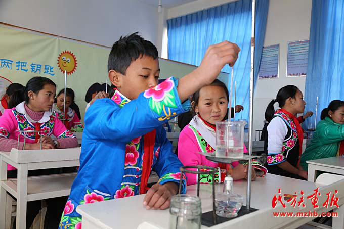 臘灣民族小學(xué)四年級的學(xué)生在上實驗課