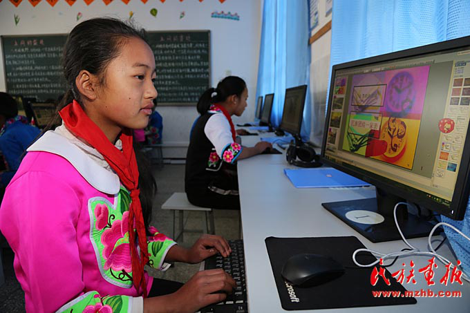 臘灣民族小學(xué)五年級的學(xué)生在上計算機課,李欣潔同學(xué)在認(rèn)真地制作PPT
