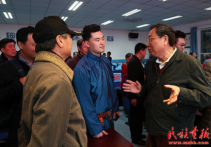 馬頭琴藝術(shù)團藝術(shù)指導(dǎo)馬卓群(前排中)與觀眾互動