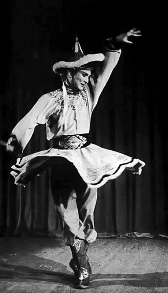 蒙古舞由民間走向劇場,始于1946年吳曉邦先生創(chuàng)作女子雙人舞《希望》和群舞《民族之路》。賈作光則將蒙古舞的發(fā)展推向高潮。深入草原,體驗游牧生活,賈作光不斷挖掘和整理傳統(tǒng)文化資源,蒙古族舞蹈經典相繼問世——遼闊的草原上,一位身著傳統(tǒng)民族長服的女子頭頂疊碗,雙手持盅,英姿妖嬈款款起舞,動人的《盅碗舞》渲染出牧民迎來新生活的喜悅和歡樂;提煉宗教舞蹈精華,提取擠奶、射箭等生活動態(tài)元素,蒙古族干練灑脫的民族氣質在《鄂爾多斯舞》中盡顯……