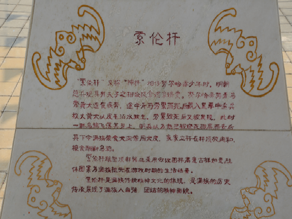 房子煙囪的設(shè)置在東、西山墻外,煙囪距房子0.6米左右,用青磚或土坯砌成,有圓形、方形兩種。院周圍用木柵欄,或用磚、土砌成圍墻。大門多設(shè)門樓或門房。院內(nèi)設(shè)有影壁墻。影壁墻后側(cè)立有“索倫桿”。院內(nèi)東西廂房南面修有牛棚、馬棚、車棚和儲(chǔ)存谷物糧倉。滿族人講究衛(wèi)生,室內(nèi)外都收拾得干凈利落,物品放置井井有條,柴禾垛得立立整整。