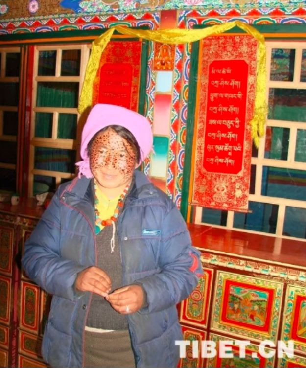 一般情況下,藏北牧區(qū)婦女外出勞作都會用圍巾將頭部和頸部圍住,這樣既可以保暖御寒又可以抵御強(qiáng)烈的紫外線。而“安達(dá)”可用于涂抹除了眼睛、嘴巴、鼻子外所有臉部區(qū)域。涂抹在臉上的“安達(dá)”自然干了后,婦女們往往會等到第二天甚至第三天再用溫水洗凈。