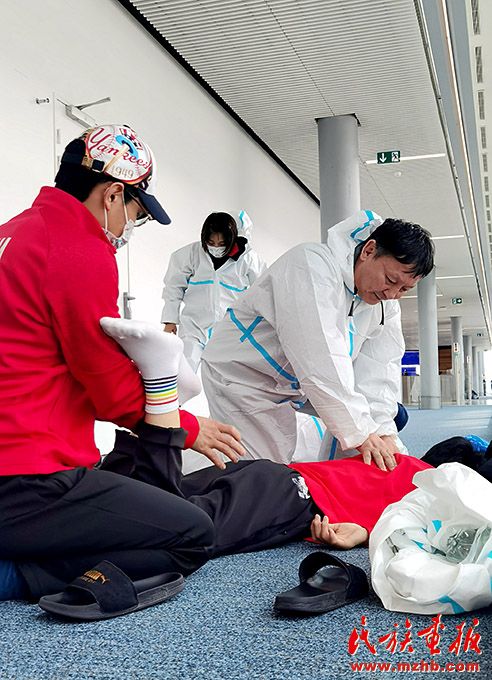 烏日根桑格利用在機(jī)場轉(zhuǎn)機(jī)時間,為國家柔道隊運動員進(jìn)行調(diào)整治療。