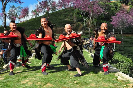 南澗“彝族跳菜”主要有“宴席跳菜”和“舞臺(tái)跳菜”兩大類?!把缦恕币卜Q“席間跳菜”或“實(shí)地跳菜”,是當(dāng)?shù)匾妥迦罕娫诮Y(jié)婚慶典、新房落成、迎接貴賓、給老人祝壽等重大喜慶場(chǎng)合,宴請(qǐng)賓客,為增加喜慶氣氛而跳菜,講究“吃著并快樂著”。另一類是“舞臺(tái)跳菜”,根據(jù)表演地點(diǎn)或舞臺(tái)大小又分為“舞臺(tái)跳菜”和“廣場(chǎng)跳菜”?!拔枧_(tái)跳菜”即舞臺(tái)上表演的跳菜,演員通常在20人左右,舞蹈動(dòng)作粗獷豪放、剛健有力,聲音高亢明亮。而“廣場(chǎng)跳菜”演員少則幾十人,多則可達(dá)幾百人,氣勢(shì)恢宏、整齊和諧。