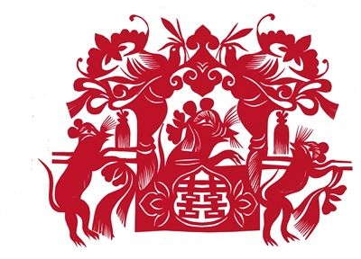 冬日的陽(yáng)光透過(guò)玻璃窗,灑在老屋的炕上。幾位婦女在炕上鋪一塊布,對(duì)窗盤(pán)腿而坐,然后一手捏紅紙,一手拿剪刀,神情專(zhuān)注地剪“老鼠嫁女”。這是春節(jié)前在和林格爾縣河頭村看到的畫(huà)面。老鼠嫁女,也叫老鼠娶親,在傳統(tǒng)剪紙中有不同的版本。據(jù)了解,民俗剪紙“老鼠娶親”在清道光年間就開(kāi)始流行了。欣賞和林格爾剪紙傳承人創(chuàng)作的“老鼠娶親” ,老鼠的形象多采用粗獷輪廓,又用細(xì)線條加以襯托,如老鼠胡子、花轎穗子、喜鵲羽毛、花紋等。河頭村的婦女剪窗花時(shí),鼠是常表現(xiàn)的題材之一,被稱(chēng)為“靈人”,如老鼠舔燈盞、老鼠偷瓜、老鼠吃葡萄、鼠咬天開(kāi)等。幾十年前,段蓮女老人剪的老鼠靈活生動(dòng),富有動(dòng)感,遠(yuǎn)近聞名,她的 “吉祥鼠”剪紙技藝傳承至今。