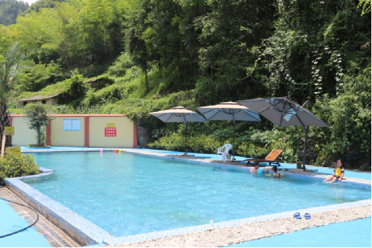 大人們在青山綠水間泡溫泉、賞風(fēng)景,孩子們在兒童水上樂園嬉戲玩鬧,中晚飯點時在農(nóng)家樂里吃著當?shù)亓魉B(yǎng)殖的生態(tài)魚,體驗著鄉(xiāng)村風(fēng)情,舒適愜意遍布全身。