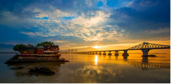 榕城夜色輝煌璀璨,閩江之水為之注入一片平和、寧?kù)o,使整個(gè)城市動(dòng)靜相宜。