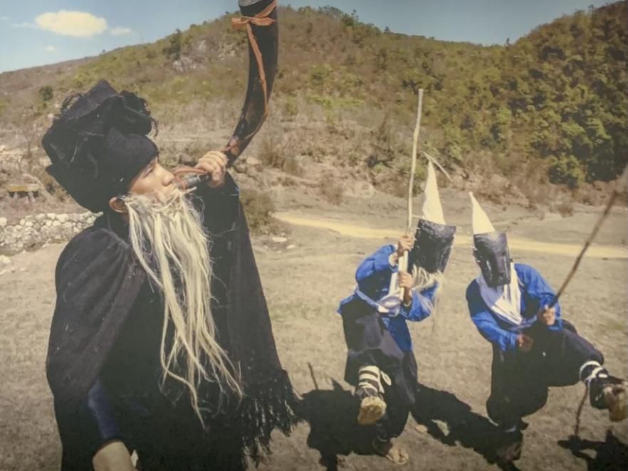 彝族男子正在進(jìn)行祭祀活動(dòng)(許覬佳攝于貴州省博物館)