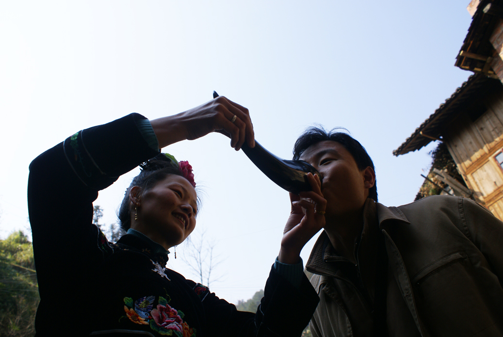 領(lǐng)教苗族同胞的牛角杯“盛情酒” 劉軍攝影