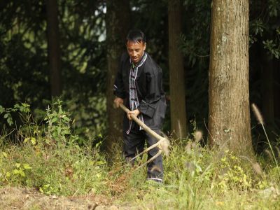 貴州貴陽(yáng)苗族農(nóng)作物種植-田里鋤地