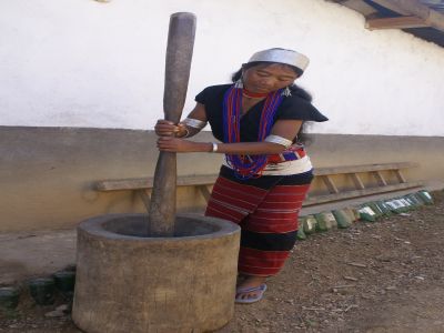 圖片名稱(chēng):佤族舂米