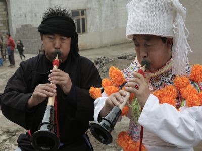 貴州貴陽苗族婚禮上的奏樂